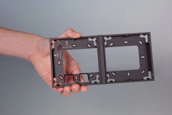 Der hochwertige 2-Montagerahmen aus eloxiertem Aluminium eignet sich perfekt zur Befestigung der Intercom, des NFC Code Touchs (Gen. 2), des Touch Pures oder des Touch Pure Flex auf jeder Fassade.