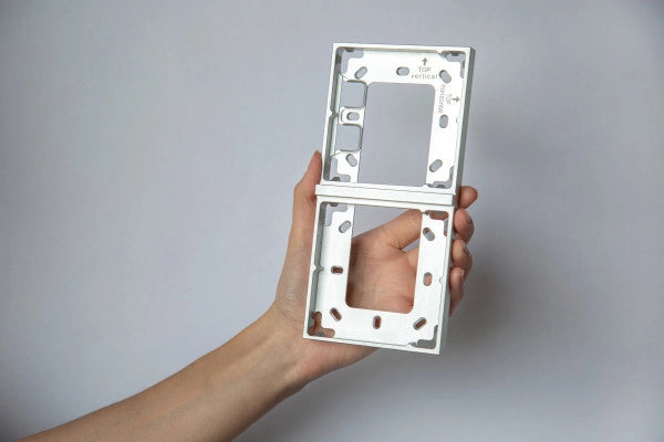 Der hochwertige Montagerahmen aus eloxiertem Aluminium eignet sich perfekt zur Befestigung der Intercom, des NFC Code Touchs (Gen. 2), des Touch Pures oder des Touch Pure Flex auf jeder Fassade.